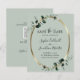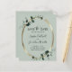 Budget Eukalyptus Guld Metallisk Salvia Bröllop Spara datum... Vår prisvärda salviagröna botaniska Spara datum-kort har en guldmetallisk oval ram dekorerad med smaragdgröna eukalyptusblad som skapar en naturlig ram runt texten med tillkännagivandet. Baksidan av kortet innehåller information om er bröllopswebbplats och en QR-kod grafisk mall som ni kan ersätta med er egen QR-kod. All exempeltext på båda sidor av kortet kan enkelt ändras med era egna detaljer i personaliseringsmallen.