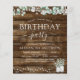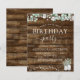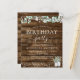Budget Rustika Landet Utomhus på Mörkt Trä med Grönska Eukalyptus och Bomull med Glas på Sträng Ljus Vår, Sommar, Höst eller Höst Födelsedagsinbjudningar - inkluderar vacker och elegant skript typografi för den speciella Födelsedagsfirande.