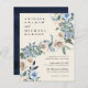 Elegant fall bröllopsinbjudningar på blommigten som innehåller kräm och blåa vattenfärgblommor som ramar in dina bröllop-uppgifter som visas i trendig typografi med namn på den lämnat sidan och detaljuppgifter till högerna mot en beige bakgrund. Som en del av budgetvalet här om Zazzle, bjuder dessa in kom i begränsada storlekar och pappra lagrar. Om du behöver ett annat storlekt eller pappert lagrar kan du överföra den här designen till ett standardformat 5x7 med hjälp av verktyg för designöverföring för fler alternativ.