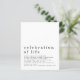 Ett ekonomiskt alternativ i BUDGET på en mindre storlek på 4,5 x 5,6 tum (110 lbs vikt), som är av samma tjocklek som ett vykort (är dock inte lämpligt för använda som vykort). OBSERVERA ATT DET FINNS EN inbjudan per lakan. Budget Firande of Life Luncheon-inbjudan. En enkel design med mycket tomt utrymme för en modern contemporary. Huvudet är stort i gemener av snyggten med informationen under. Anpassa enkelt texten till din egen. Du kan också ändra färg och bakgrund om du vill genom att anpassa ytterligare alternativ i den här fullständiga anpassadet.