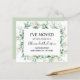 Budget Eucalyptus Grey med Modern och Elegant Watercolor Vår I har Flyttat New Home eller Ny adress card - innehåller vacker och elegant skripttypografi med modern botanisk grey för det speciella nya hemmet eller Nya adress firande.