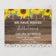 Budgeterat Rustic Farmhouse Wood, String Light and Gult Sunsun Flowers and Snöre Vi har Flyttat New Home eller Ny adress Card - innehåller vacker och elegant skripttypografi med modern blommigt för speciella New Home eller Nya adress firande.