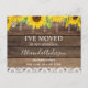 Budgeterat Rustic Farmhouse Wood, String Light and Gult Sunsun Flowers och Snöre I har Flyttat New Home eller Ny adress Card - innehåller vacker och elegant skripttypografi med modern blommigt för speciella New Home eller Nya adress firande.