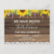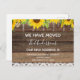 Budgeterat Rustic Farmhouse Wood, String Light and Gult Sunsun Flowers and Snöre Vi har Flyttat New Home eller Ny adress Card - innehåller vacker och elegant skripttypografi med modern blommigt för speciella New Home eller Nya adress firande.
