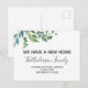 Budget Grey Modern och Elegant Watercolor Vår Vi har Flyttat New Home eller Ny adress Card - omfattar vacker och elegant manustypografi med modern botanisk grey för det speciella nya hemmet eller Nya adress firande.