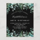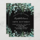 En trendig inbjudan till en 40-års (eller vilken ålder som helst) födelsedagsfest, förtrollad skogstema. En svart bakgrund med ormbunkar och eukalyptusgrönska. Namnet skrivs med en modern handstilsbetonad skrift. Anpassa och lägg till dina festdetaljer.