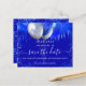 En trendig kunglig blå bakgrund dekorerad med kungliga blå dropar, konfetti och ballonger. Anpassa och lägg till ett datum och namn/ålder. Texten: Spara datum är skriven med en stor trendig handskriven stil.