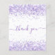 En feminin och elegant födelsedag tack-kort. En chic vit bakgrund. Med lila, violett falskt glitterstoft. På framsidan stor handskriven script och texten: Tack.