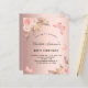 En roséguld, rosafärgad övergångsbackground. Dekorerad med roséguld och rosa blommor, rosor, pampasgräs och fjärilar. Anpassa och lägg till ett namn och festdetaljer.