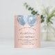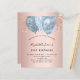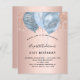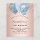 För en elegant 21-årsdag (eller vilken ålder som helst). En roséguld falskt metallisk bakgrund. Dekorerad med roséguld, rosa falskt glitterdropp, målad dropp-effekt och blå ballonger. Anpassa med namn, ålder 21 och festdetaljer. Namnet skrivs med en handskriven typsnitt. Marinblå bokstäver