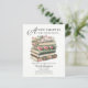 Fira din kommande bröllopsdag med vår charmiga bröllopsinbjudan med tema Wildflower Book! Denna inbjudan är det perfekta sättet att sätta tonen för en bröllopsfest med litterärt tema, med förtjusande böcker prydda med vilda blommor på en krämfärgad bakgrund. Baksidan har en design som liknar ett vintagebokomslag. Inbjudan är enkel att anpassa med alla viktiga detaljer om evenemanget.