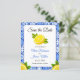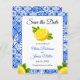 Tema för Bröllop i Medelhavsområdet - Det italienska blått plattelkortet Lemon Bröllop spara datum i Medelhavet!