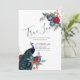 Vackra Peacock med kalk och blått, burgundblommor, sage grönt löv på hösten, hösten, vinterbröllopsartiklar. En del av en större samling som omfattar inbjudningar till budgetbröllop, spara datumen, RSVP-program, tack vare fotokort, möhippa- och bröllopsfest-presentationer och mycket annat. Om du vill ha en detaljerad kostnadsfri planering för vinterbröllop går du till weddingdesignchic.com.