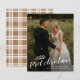 Ett enkelt foto semesterkort med handskriven första julen och gren och minimal text. Klicka på redigeringsknappen för att anpassa denna design.