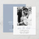 Små 4,5" x 5,6" prisvärda dammiga blå bröllopskort för att spara datum med ditt foto och dina detaljer i chic bokstav. **VITA KUVERTER ÄR VALFRIA. Se till att dubbelkontrollera din beställning innan du lägger till den i din varukorg, eftersom det du ser på skärmen är vad som kommer att skrivas ut. Live Design Service kan hjälpa dig med din designlayout om det behövs. FLER designalternativ i vår butik.