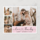 Budget, Elegant, Minimalist Rosa och Vit Handskriven Manus Bröllop Grid 4 Foto Collage Tack Kort. Stylisht bröllopskortsmall med fyra (4) foton på framsidan och ett foto på baksidan. Med texten "Kärlek och tack" i en kursiv handskriven typsnitts hjärtskrift med svans. Anpassa ditt namn och tackmeddelande. Om du behöver hjälp eller matchande artikel, vänligen kontakta mig!