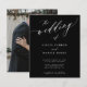 Elegant trendig BUDGET-fotobryllopsinbjudan med "the wedding of" vit text och svart bakgrund med ett chic calligrafiskript. Anpassa den med ditt förlovningsfoto på baksidan och din text. ++++++++++ Denna tidlösa bröllopsinbjudan är lämplig för moderna formella bröllopsceremonier och mottagningar. ++++++++++++++++++++++++ VÄNLIGEN LÄS DETTA INNAN KÖP! Detta är ett budgetvänligt bröllopskort som trycks på ett pappersark (varje ark har ett kort). ++++ För bästa förhållande mellan pris och kvalitet är vårt råd att välja Semi-Gloss-pappertyp (den är tillräckligt tjock för att användas som brevpapper) ++++ Om du behöver kuvert, välj ENVELOPE OPTION. +++ Dubbelkontrollera all information och stavning av din text eftersom du kommer att få exakt vad du ser - ingen annan kommer att kontrollera någonting innan tryckning. ++++ Detta kort är designat för storlek 4,5" x 5,6". Om du väljer en annan storlek på