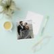 Denna moderna platta rädda-datum-kort för bröllop med foto har en ren, minimalistisk design. Framsidan har ett foto i par med en stilren typsnitt. På baksidan har jag lagt till datum och plats. Jag har ställt in bakgrunden som genomskinlig så att papprets färg kommer att tjäna som basfärg. Du kan välja en färg för bakgrunden om du föredrar det. Du kan också redigera texten för att passa dina behov. Du kanske vill ta bort ett textfält som du inte behöver eller ändra färg eller typsnitt för viss text. Använd de intuitiva designverktygen, ditt favoritfoto och din inspiration för att göra detta stilrena platta rädda-datum-kort för bröllop unikt!
