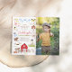 Fira din lilla bondes stora dag med denna födelsedagsinbjudan! Den vänstra sidan av denna budgetvänliga födelsedagsinbjudan visar en ram full av charmiga illustrationer av lantdjuren. Det finns två små grisar, en familj av ankor, kor, kaniner, en häst och en åsna, getter, får, en katt och en hund, ett hus fullt med höns och en stor röd lada. Inuti ramen står det "Nöff, kvack, mu & vrinskning" och en inbjudan till födelsedagsfesten. Födelsedagsbarnets namn är skrivet med röda skrivstilbokstäver med deras ålder under i gröna versaler. Evenemangets detaljer är tryckta nedan i enkel seriff-typografi. På höger sida av inbjudan finns ett anpassat foto som du väljer. Denna födelsedagsinbjudan för alla åldrar är perfekt för besök på en husdjursgård, firande på en lokal bondgård och gårdsbaserade fester. Som en del av det budgetvänliga urvalet på Zazzle är detta ark inte en standardstorlek för inbjudningar eller papperskvalitet. Om du vill ha denna design på ett inbjudnings