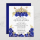 Elegant Glam Blue Blommigt Guld Tiara Quinceanera-inbjudan