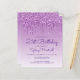 Trendigets 21:a födelsedagsinbjudan innehåller en sparsam lila faux glitter drip gräns och lila Mbre-bakgrund. Orden "18:e födelsedagen" och hedersgästens namn visas i handskriftsskriptet för avslappnad lila, med resten av anpassadet i sans serif font. Samma lila glitter drop-design visas på baksidan.