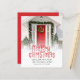 BUDGET God jul New Home Photo Reindeer Script-julkort. Ett budgeterat prist SMALLER-kort på 4,5 tum x 5,6 tum 110 lb för ditt festive hälsning på ett SEMI GLOSS 110 lb-kort lagrar (liknande ett vykort). Byt bara ut exempelfotot mot ditt eget och anpassa det till hälsning och namn och nytt adress vid grund. God jul är i en uppsättning typografi som dekoreras med söta renar. Du kan ändra färgerna på vilken text som helst om du vill matcha fotot bättre genom att redigera ytterligare alternativ, och ändra den röda bakgrunden färg på baksidan.