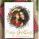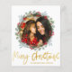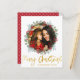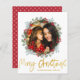 Modern, enkel och elegant, med en central julstämning i rött och grönt och "God jul calligrafi i hand skriven stil i faux gol. Anpassa med dina egna foton och din familj namn för att skapa din egen unika julafton hälsning.