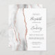 Den vänstra kanten på denna eleganta moderna bröllopsinbjudan har en grå och vit akvarell-agat-kant med falskt rosa guldglitter. Den anpassningsbara texten kombinerar handskrift, kopparplåt och kursiv stil i kolgrått på vit bakgrund. Baksidan har en matchande grå, vit och rosa guld-agat-design.
