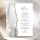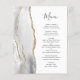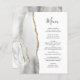 Den moderna bröllop-menyn i elegantens lämnat kant har en grått och en vit vattenfärgad agat gräns som trimmas med faux guld glitter. I anpassadet kombineras handskriftsskript för kol-grått och typsnitt på vit bakgrund. Den omvända sidan har en matchande grått- och guld-agatdesign.