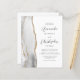 Den här elegantens lämnat kant har en modern bröllopsinbjudan med grått och vit vattenfärg som agerat i gräns med faux guld glitter. Anpassadet kombinerar grått-skriptet för kol och sans serif typsnitt på vit bakgrund. Den omvända sidan ger plats för bröllop-information på en solid vit bakgrund, tillsammans med en QR-kodgäst som kan söka på webbplatsen och OSAN, vilket sparar kostnaderna för utskrift och utskick av separat OSA kort.