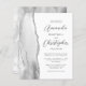 Den här elegantens lämnat kant har en modern bröllopsinbjudan med grått och vit vattenfärg som agerat i gräns med faux silver glitter. Anpassadet kombinerar grått-skriptet för kol och sans serif typsnitt på vit bakgrund. Den omvända sidan har en matchande agate-design.