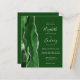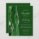 The left-hand edge of this elegant modern wedding invitation features a hunter green watercolor agate border trimmed with faux silver glitter. The customizable text combines silver gray handwriting, copperplate and italic fonts on a green background. The reverse side provides spaces for 4 photos (1 square, 2 horizontal, 1 long vertical) and room for your wedding website URL or other information.