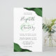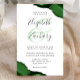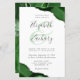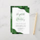 A hunter green watercolor agate design trimmed with faux silver glitter appears in two corners of this elegant design. Personalize it with the couple's names in charcoal gray handwriting script over a large green ampersand. Add the wedding details in charcoal gray copperplate and italic fonts on a white background. The reverse side features a matching green and silver agate design.
