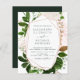 Budgeten Grey Botanical och Ro Guld Geometric Watercolor Vår bröllop Inbjudningar på vit bakgrund - innehåller vacker och elegant manustypografi med modernt botaniskt löv och grönt för den speciella Bröllopsdagen firande.