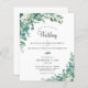 Moderna, botaniska bröllopsinbjudningar i elegant tryckta på lätt pappert ideal för konservativets budgetar och/eller handleverans till gäster med eukalyptus greenery och mjuk grått-text från kol. Kontakta designern via Zazzle-Chattan eller makeitaboutyoustore@gmail.com om du vill att designen ska ändras, på en annan produkt eller samordnande artiklar.