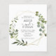 "Vi presenterar vår prisvärda bröllopsinbjudan! Gör din speciella dag minnesvärd utan att bryta banken! Vår budgetvänliga bröllopsinbjudan visar en charmerande illustration av vattenfärgen eukalyptus löv på ett geometriskt ram, som tillför en aning naturlig elegans. Inuti hittar du detaljerna i ett elegant serif-teckensnitt, med ord och i ett modernt skript för en contemporary. På baksidan hittar du din QR-kod för enkel digital åtkomst tillsammans med OSA och ytterligare information. Fira kärlek överkomligt och vackert!