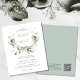 Elegantens budgetvänliga allt-i-ett-bröllopsinbjudan med vattenfärger av sage-grönt eucalyptus grenery, lagret löv med guld accents, modern mjuk grått-typografi och namn i ett snyggt guld-skript. På motsatt sida kan du ange adress på bröllop webbplats för att skapa en QR-kod för dina gäster så att de kan söka efter OSA online och få ytterligare information om bröllop, t.ex. instruktioner och inkvartering.