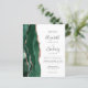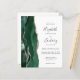 Den vänstra kanten på denna eleganta moderna bröllopsinbjudan har en smaragdgrön akvatintakant i agatstil med falskt roseguld-glitter. Den anpassningsbara texten kombinerar kolgrå handskrift, kopparstick och kursiva stilar på en vit bakgrund. Baksidan ger utrymme för detaljer om bröllopet på en enfärgat vit bakgrund, tillsammans med en QR-kod som gästerna kan skanna för att besöka er webbplats och svara, vilket sparar kostnaden för att skriva ut och skicka separata svarsblanketter. OBS: Kuvert ingår inte automatiskt i dessa budgetinbjudningar, så glöm inte att välja alternativet "tomma vita kuvert"!