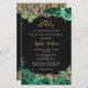 Vintage för budgetElegant Emerald Grönt Ro Butterflies Black Guld Snöre Quinceañera Quince-inbjudan till
