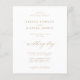 Elegant - enkel, minimalistisk romantisk BUDGET-mall för bröllopsinbjudan till ett rimligt pris med en trendig av klassens snyggt-chic faux guld handskriven manustypografi. ++++++++++++ Enkel att anpassa med dina uppgifter! Inbjudan är lämplig för formellt bröllop. ++++++++++++++++ Observera att bakgrunden till färg kan ändras för att matcha bröllop-färg-schemat. Du kan ändra den när du har valt alternativet ANPASSA IT. +++++++++++ LÄS DETTA INNAN DU KÖPER! Det här är ett budgetöverkomligt bröllop-kort som är tryckt på ett pappert lakan (varje lakan har ett kort). ++++ För att få bästa prisa kvalitet rekommenderar vi att du väljer den pappra typen av halvglöd (det är tillräckligt tjockt för att kunna användas för kontorsprogram) ++++ Om du behöver kuvert väljer du alternativet ENVELOPE. +++ Dubbla-kontrollera all information och all stavning i texten eftersom du får exakt det du ser - ingen annan kommer att kontrollera någonting innan du skriver ut. +++ Detta kort är designat för storleka 4,5 x 5,6 tum. I fodral väljer du en annan storlek av kortet och texten går utanför sidan. Allt måste fixeras innan du lägger till produkten i kundvagnen. Be Live Design Service om hjälp.