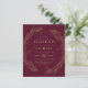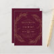En klassisk botanisk design med en krans som bildas av två graciösa sprit av guld konsthög. Redigera enkelt guld-färgad-texten på en burgundisk bakgrund. Kortets baksida är en solid burgundi.