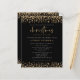 Budget Guldblixtrande Jul Progressiv Fest. Ett budgetpris MINDRE 4,5” x 5,6” alternativ. Finns i en HALVMATT 110 g KARTONG liknande i tjocklek som ett vykort. Det finns EN per ark. Guld Faux Glitter Jul Svart Inbjudan. En glam glitterkant är på varje sida topp och botten, och Jul är i ett gemener handstilsmanus. Personifiera enkelt texten med dina egna detaljer. Du kan också ändra texten och bakgrundsfärgerna via alternativet anpassa ytterligare om du önskar.