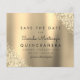 Meddela din kommande Quinceañera med stil med vår "Gold Glitter Quinceañera Save the Date"-inbjudan. Detta utsökta kort fångar essensen av denna milstolpsfirande, och blandar ungdomlig entusiasm med en touch av glamour.