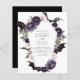 Budget Halloween 31 oktober Höst Mörkt Vattenfärg Lila och Gröna Bröllopsinbjudningar på Svart bakgrund - inkluderar kuslig och skrämmande elegant skript typografi med moderna Blommor och Fladdermusvingar för den speciella Kusliga Bröllopsdag firandet.