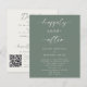 Sage green Elegant, minimal, and simple "Happily Ever After" budget wedding invitation double-sided. The back side contains reception details and RSVP details with a QR code.