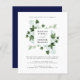 INBJUDAN TILL LÅG KOSTNADSKOSTNADSKOSTNAD - ENVELOPP INGÅR INTE. En vackert elegant botanisk bröllopsinbjudan med en temadesign för organisk blommigt i vattenfärgsgrön grönt och klassiskt grått-typsnitt med chicens kalligrafi. Namn förekommer i grått- lettering, framskriden av en lush ivy löv, snö bär och eukalyptus foliage på en skarp vit bakgrund. Kortet är omvänt i en dramatisk marinblått elegant med extra-utrymme för att lägga till uppgifter om extra, t.ex. osa, mottagningsinformation, register, bröllop webbplats med mera. Välj den här designen för elegant vinterbröllop, höst- eller höstdagg eller bröllop på sommaren. Matchande objekt finns i vår Hedera-samling. Kontakta oss via butiken eller skrivan på citronelladesign@gmail.com om du vill ha hjälp eller anpassningsbar.