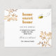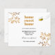 En chic vit bakgrund dekorerad med falska gyllene botaniska kvistar, lövverk. Med texten: Hem ljuva hem. Personifiera och lägg till din nya adress och namn. Svart och gyllene text.
