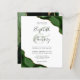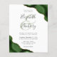 A hunter green watercolor agate design trimmed with faux gold glitter appears in two corners of this elegant design. Personalize it with the couple's names in charcoal gray handwriting script over a large green ampersand. Add the wedding details in copperplate and italic fonts on a white background. The reverse side features a matching green and gold agate design.