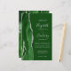 The left-hand edge of this elegant modern wedding invitation features a hunter green watercolor agate border trimmed with faux silver glitter. The customizable text combines silver gray handwriting, copperplate and italic fonts on a green background. The reverse side features a matching hunter green and silver agate design.