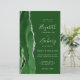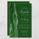 The left-hand edge of this elegant modern wedding invitation features a hunter green watercolor agate border trimmed with faux silver glitter. The customizable text combines silver gray handwriting, copperplate and italic fonts on a green background. Add additional details on the back, along with a QR code to help your guests visit your wedding website.
